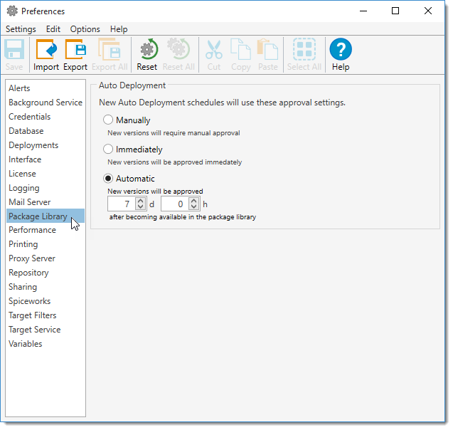 The Auto Deployment approval policy determines when your auto deployment schedules will be automatically updated, unless you approve them manually, after PDQ releases updated packages in the Package Library. The default approval policy is set in Preferences but can be overridden at the package and schedule level.
