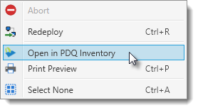 Deployments can be further verified using the Application page of the companion product PDQ Inventory. The Computer Window in PDQ Inventory can be opened directly from PDQ Deploy by selecting one or more computer names, right-click and select Open in PDQ Inventory. This option is available from the Deployment Status window, All Deployments page, Deployments tab of the Package page, and the Target History tab of the Schedule window. For more information, see PDQ Inventory.