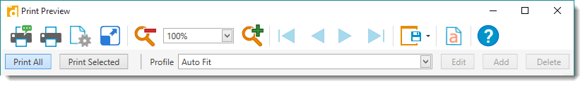 In the Print Preview window you can select the profile option, view and control the output of the document, then choose to print or export the report. If you click Reports > Report > Profile to open the Print Preview window, you can also click Edit, Add, or Delete to customize report profiles. Customizing profiles requires Pro or Enterprise mode. For more information, see Customizing Report Profiles and Built-in Reports and Profiles.