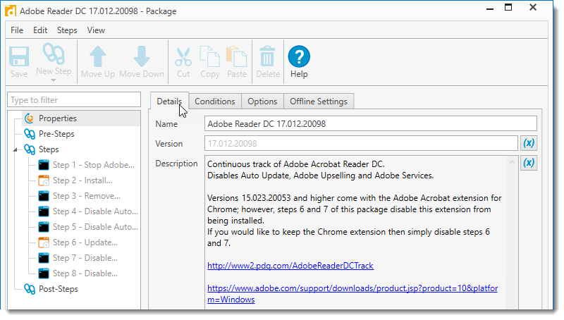 5.(Optional) To edit the package and add steps, continue to Editing and Adding Steps. To edit the properties, continue to Auto Download Properties.