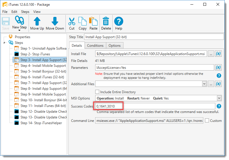 The Microsoft Installer (.msi) generates return codes (AKA error codes) when a .msi file completes. There are three (3) return codes that are automatically marked as a Success (e.g. these have an entry in the Success Codes field of the respective PDQ Deploy package step):