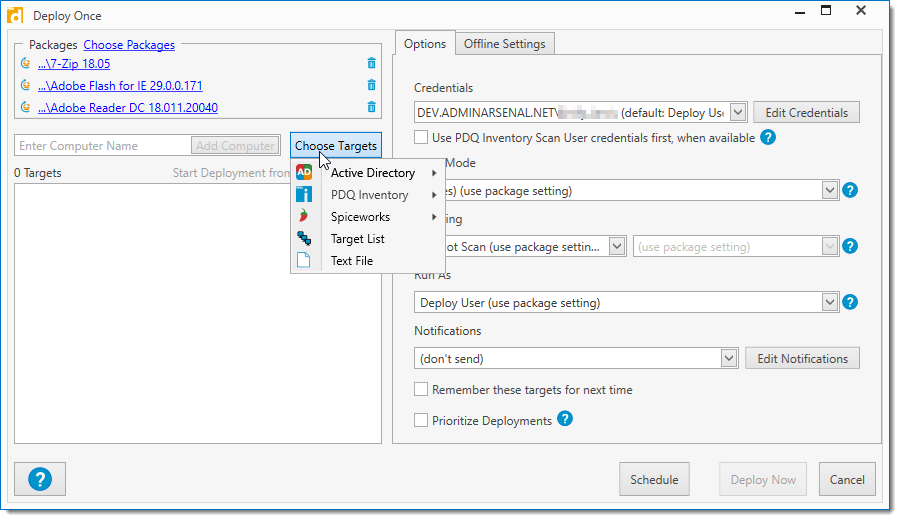 Select target computers using other PDQ Deploy Target Lists. |