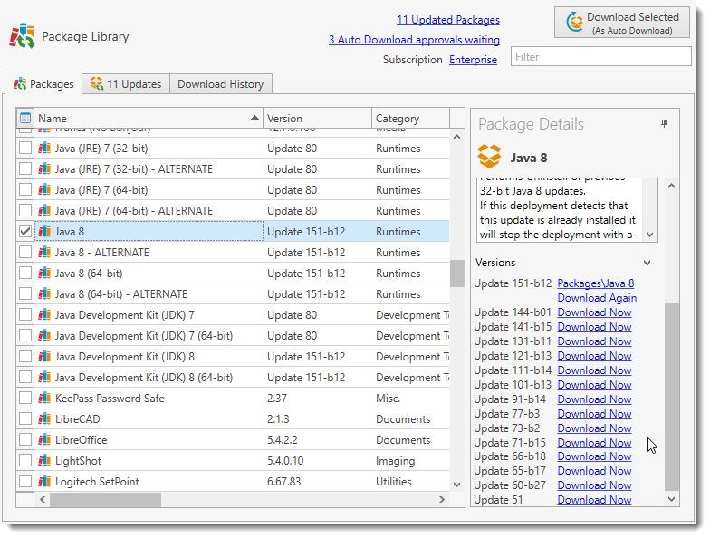 NOTE: Packages downloaded in Enterprise mode default to Auto Download and are distinguishable with a separate package icon