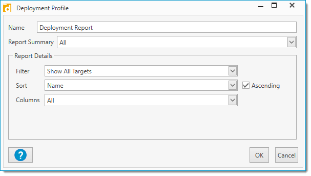 •For Deployment Details reports, see Creating a Deployment Report Profile above.