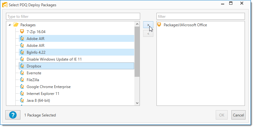 This will open the Select PDQ Deploy Package window displaying all packages available to attach.