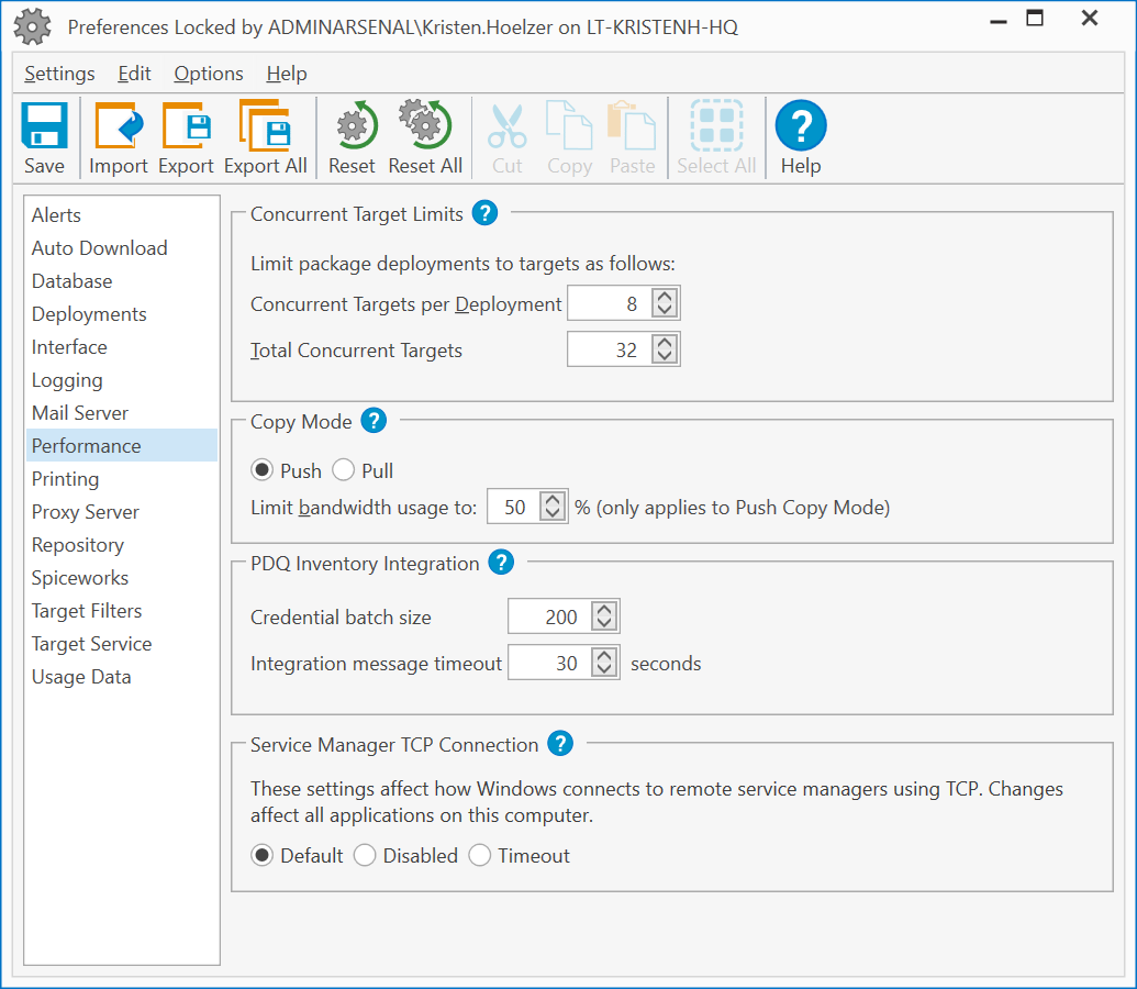 3.The Performance page defines how PDQ Deploy manages performance for deployments with limits to Concurrent Targets and a Copy Mode option that defines how PDQ Deploy copies deployment files to target computers.
