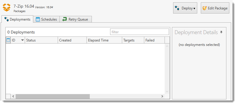The package is ready to be immediately deployed or scheduled for deployment. For information about deploying packages see Manually Deploying Packages or Setting up Scheduled Deployments.