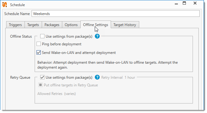 Retry Queue settings determine how PDQ Deploy handles deployments when the target computers are offline. |