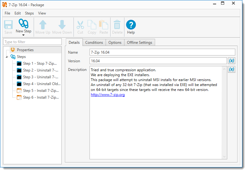7.(Optional) You can also view and edit the package and package step properties by selecting the package in the tree and double clicking (clicking