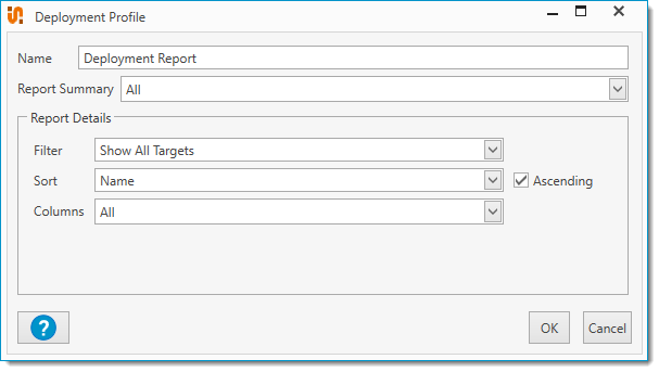 •For Deployment Details reports, see Creating a Deployment Report Profile above.