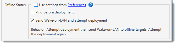 There are two other ways to manage target computers that are offline with PDQ Deploy in addition to using Heartbeat schedules. You can configure PDQ Deploy to repeatedly deploy to offline target computers until they come online (Retry Queue) and/or send Wake-on-LAN (WOL) attempts before deployments. These are set globally in Preferences > Deployments but can also be set per package, per Auto Deployment, in Deploy Once, or per Schedule.
