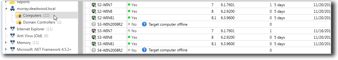 Collections populated by members of your AD Organizational Units (OUs) that are in your PDQ Inventory database. NOTE: AD OUs will only appear if they contain computers that are in your PDQ Inventory database (either directly, in a child OU, or Security Groups that contain computer objects). OUs that do not contain computer objects will not be collected or displayed. |