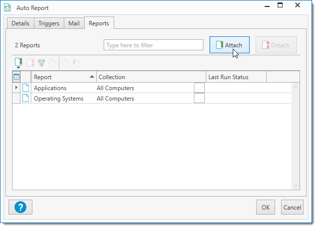 •On the Auto Reports toolbar, click Attach to Auto Report