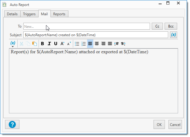 5.When you finish configuring the new auto report, click OK to save changes and close it.
