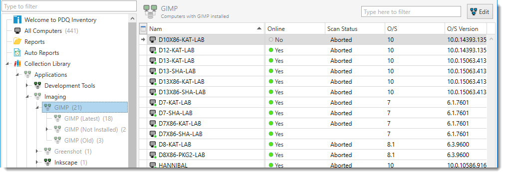The Collection Library provides prebuilt and up-to-date collections for some of the most popular free applications, updates, and runtimes. These collections are maintained and constantly updated by PDQ as new versions of these apps, updates, and runtimes are released (Enterprise license required for the Collection Library to stay current). These collections can be excellent targets for PDQ Deploy deployments and sources for Inventory reports. Some collections do not have filters of their own and are just containers for other collections. These collections function similar to a folder with collections nested underneath them.