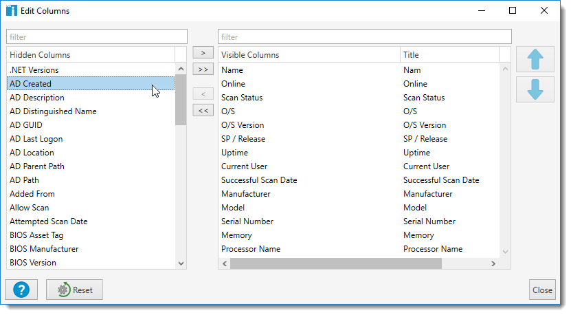 To move columns, do one of the following: •Click and hold a column header, then drag it to a new location. Blue pulsating arrows indicate where the column will be placed.