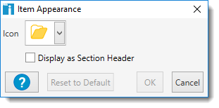 Use the drop down menu to select a custom icon. The top left icon in the list is the default icon for the item. |