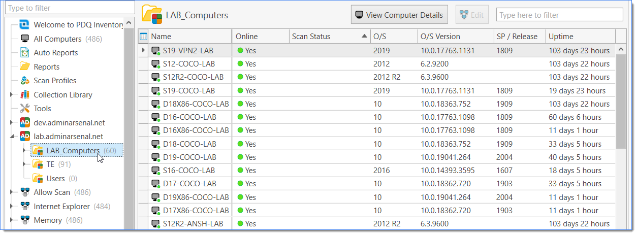 Active Directory collections are based on the Active Directory (AD) layout of your network. PDQ Inventory automatically creates these collections when you add and scan at least one AD Computer to your database.