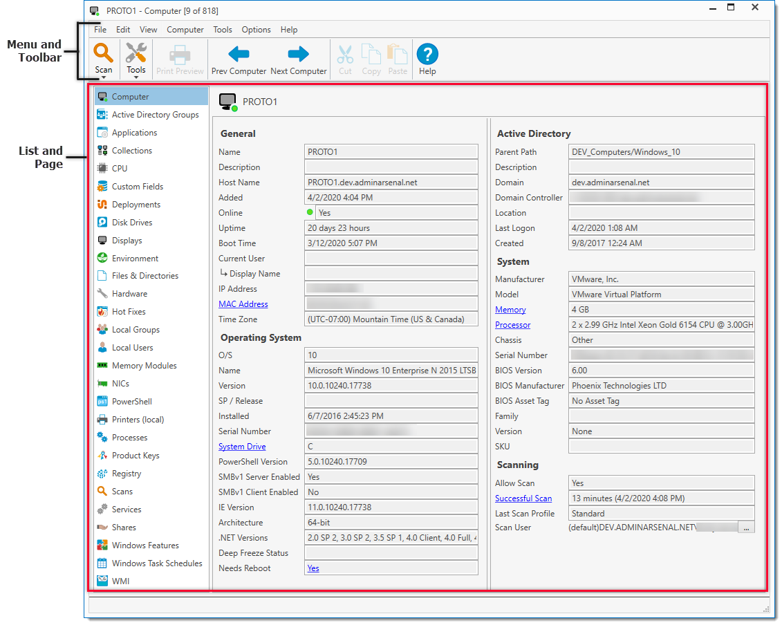 The Computer window provides access to all the inventory data for a single computer gathered from scanners. From the Computer window you can start a scan, launch PDQ Deploy and other admin tools, and preview and print page details.