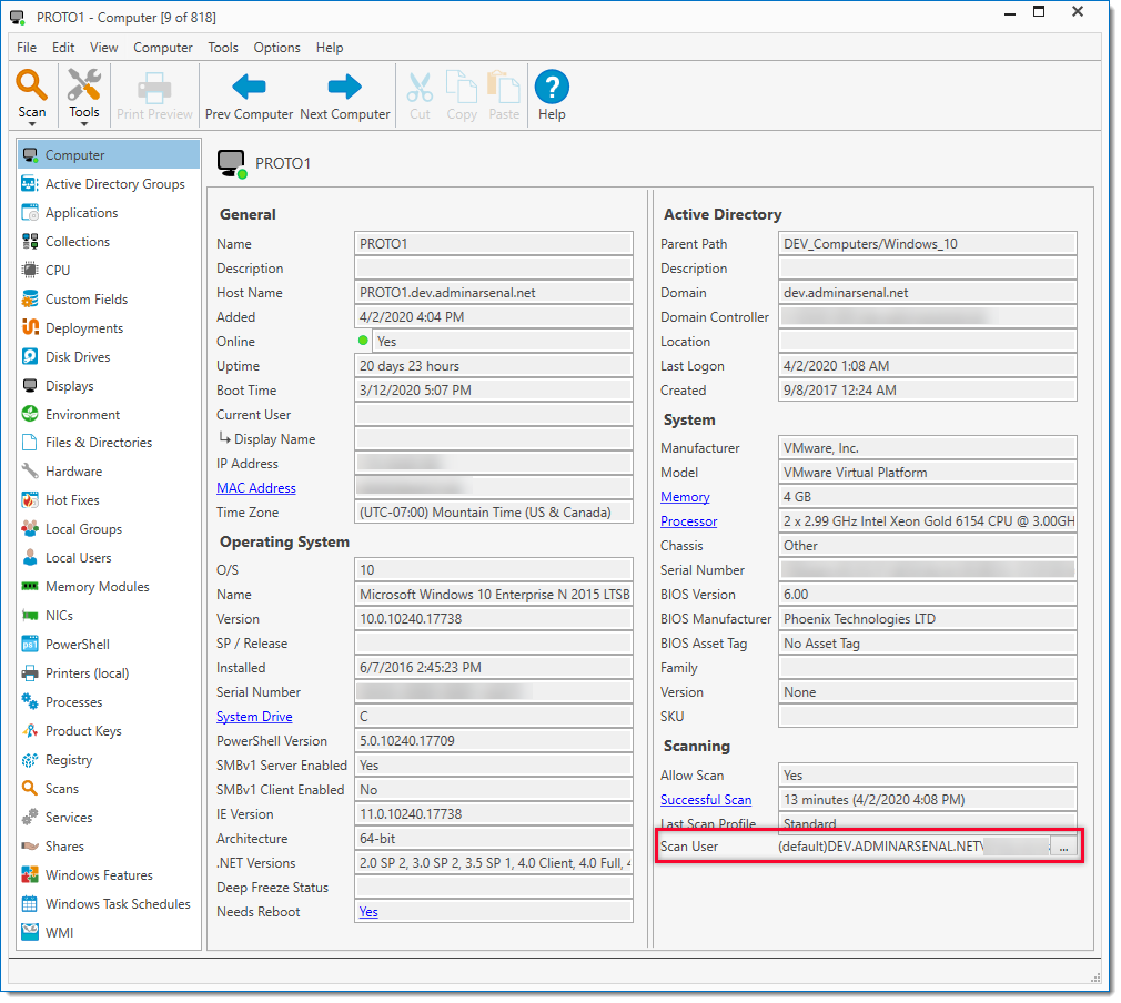 IMPORTANT: Once the scan user is set for a computer either directly, through a selection of multiple computers or through a collection, that scan user remains on each computer until updated.